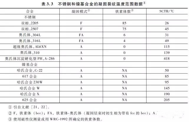 如表3.3中所列,625鎳基填充金屬的凝固裂紋溫度范圍是205℃這個(gè)數(shù)量級(jí)。這表明,該合金對(duì)凝固裂紋具有相對(duì)高的敏感性?墒,因625鎳基填充金屬具有良好的凝固裂紋抗力而經(jīng)常被選用,這似乎是和其高的凝固裂紋溫度范圍相矛盾。這種矛盾的確和確定SCTR的方式有關(guān),即使用橫向可變拘束試驗(yàn)時(shí),施加的應(yīng)變量相對(duì)較高。這種高的應(yīng)變迫使凝固裂紋沿著整個(gè)凝固范圍擴(kuò)展。在較低應(yīng)變下,出現(xiàn)的共晶液相可實(shí)現(xiàn)裂紋的愈合,這樣,625鎳基填充金屬就具有一定的抗凝固裂紋的能力。實(shí)際應(yīng)用中,當(dāng)焊縫拘束度水平高,或在不良的焊道形狀條件下(即大的深/寬比,或呈下凹的焊道形狀),均發(fā)現(xiàn)這種填充金屬對(duì)凝固裂紋敏感。