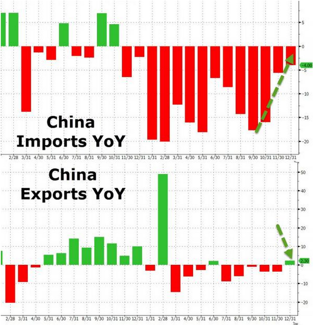 12月進(jìn)口下跌4%(按人民幣計(jì)價(jià))為2014年12月以來最小跌幅。而12月出口同比上漲2.3%(按人民幣計(jì)價(jià))則是2015年2月以來同比首升。