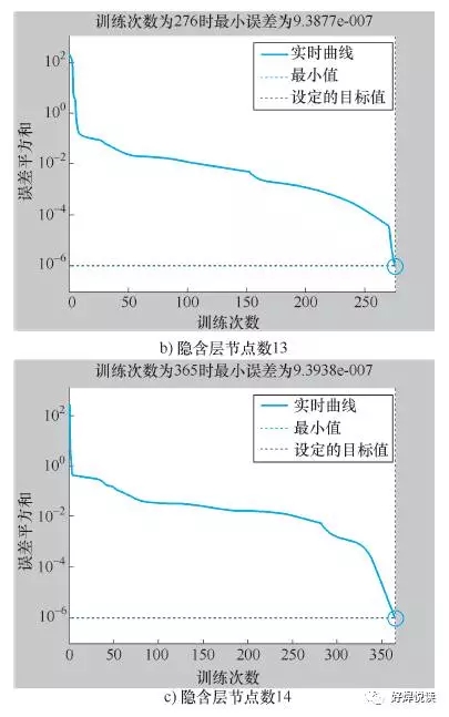 圖6-2 不同隱含層節(jié)點(diǎn)下的網(wǎng)絡(luò)訓(xùn)練誤差曲線(xiàn)
