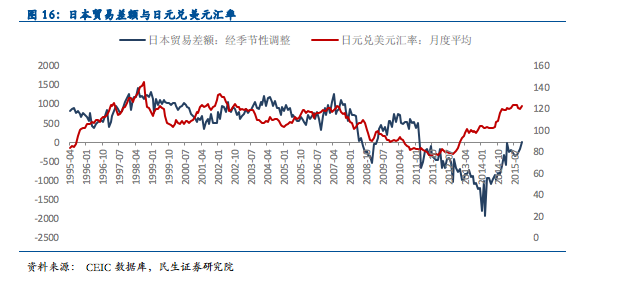 從日本的經(jīng)驗(yàn)看,2012年以來(lái)日元貶值幅度更是超過(guò)40%,但日本的貿(mào)易逆差然而不斷擴(kuò)大。由此可見(jiàn),本幣匯率貶值對(duì)貿(mào)易條件的改善并非立竿見(jiàn)影的,二者之間的高度相關(guān)性是否具有因果關(guān)系,還是源于二者對(duì)于宏觀經(jīng)濟(jì)形勢(shì)的統(tǒng)一反映,仍值得深思。