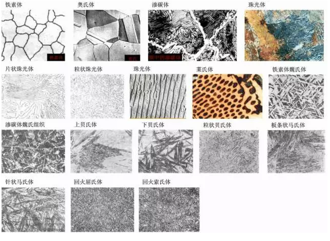 鋼鐵材料有奧氏體、鐵素體、滲碳體、馬氏體、珠光體、貝氏體和萊氏體七種基本組織結(jié)構(gòu)