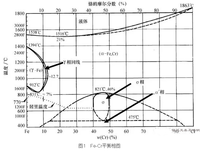 平衡相圖可用于描述不銹鋼的相變和相的穩(wěn)定性。這里介紹Fe-Cr二元系和