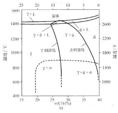 學(xué)配比的四方晶體。σ相在w(Cr)超過(guò)20%的合金中形成得最快,但是由于σ