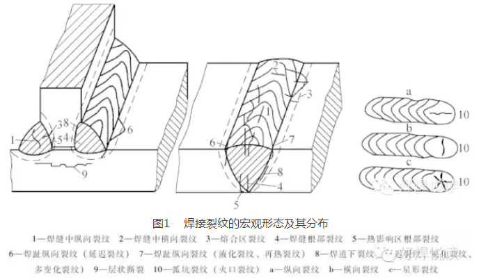 焊接裂紋是焊接結(jié)構(gòu)制造和使用過(guò)程中極其普遍而又十分嚴(yán)重的缺欠,因此引起了世界各國(guó)的關(guān)注與重視。在焊接生產(chǎn)中由于鋼種和結(jié)構(gòu)的類型不同,可能出現(xiàn)各種裂紋。焊接裂紋的產(chǎn)生涉及因素很多,往往難以確定屬于何種裂紋,需要進(jìn)行細(xì)致的分析和判斷,得出裂紋性質(zhì)的正確結(jié)論,以便找出產(chǎn)生裂紋的原因及防止措施。