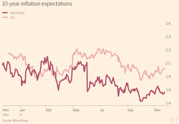美國(guó)投行預(yù)計(jì),明年美國(guó)通脹率將達(dá)到1.8%,歐元區(qū)通脹將上漲至1.1%,而日本為0.3%。