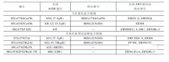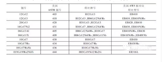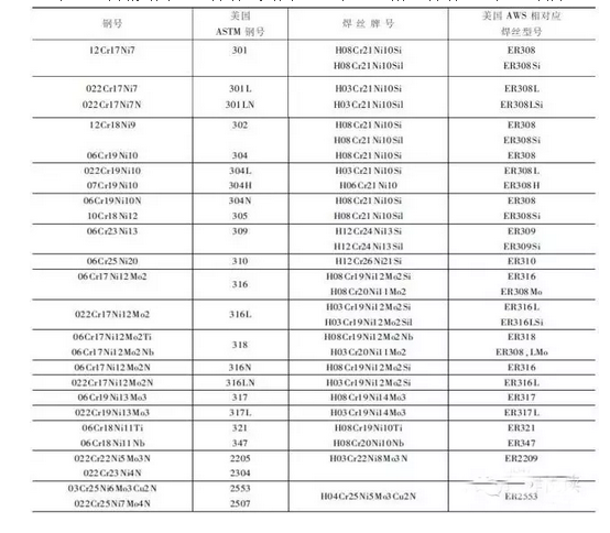 各種常用的奧氏體不銹鋼、奧氏體-鐵素體不銹鋼、鐵素體不銹鋼、馬氏體不銹鋼和沉淀硬化不銹鋼適用的TIG焊絲,可分別按表1~表3選用。